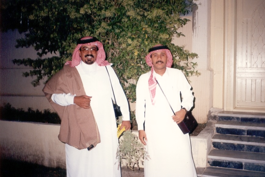 في هذه الصورة أبدو متوسّطًا رفقاء الدرب في شركة أرامكو السعودية – الجبيل (ساسرف)، وتحديدًا من الإدارة العامة للموارد البشرية: الأخ عيد الغريري والأخ علي الصيخان. جمعَتْنا زمالة مهنية امتدّت منذ بدايات توظيفنا بين عامي 1982 و1984م، وتشاركنا خلالها عضوية عدة مشاريع للموارد البشرية في مختلف المجالات.