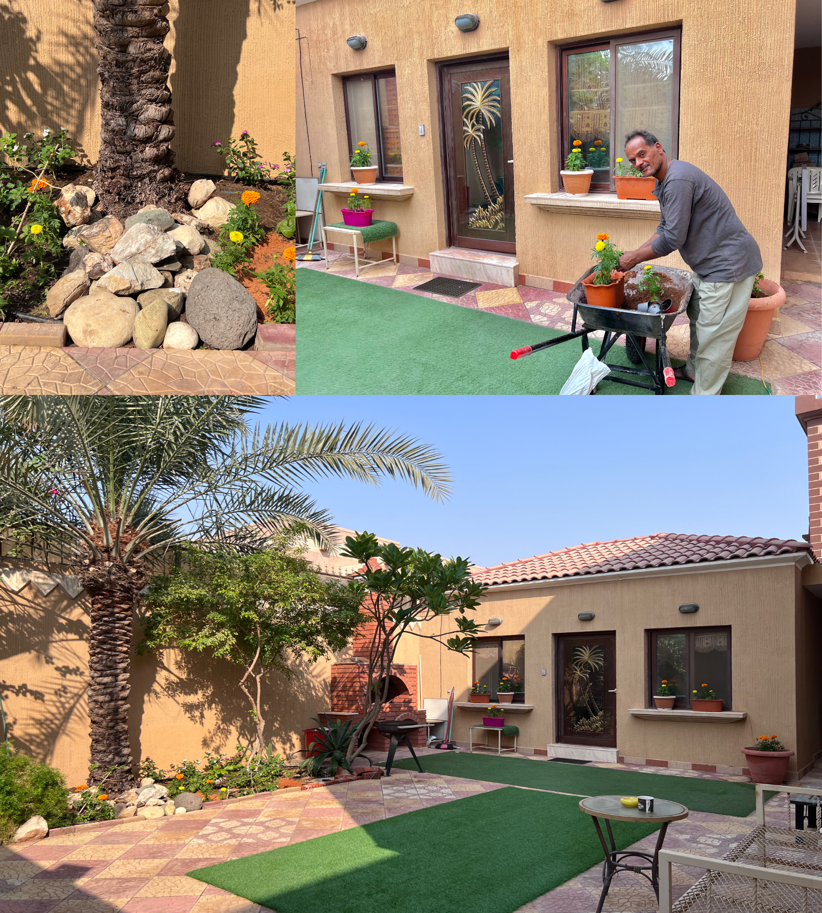 ورغم أن المكان امتلأ برائحة السماد التي خيّمت على الفناء، فإن النتيجة كانت عملاً جميلاً يشرح الصدر، ويمنح الداخل والخارج شعوراً بالسعادة منذ أول نظرة في الصباح. فالجلوس في ساحة البيت بين الألوان الطبيعية يبعث على الراحة، ويُشعر المرء بنقاء نفسي تصنعه الرائحة الزكيّة والمنظر البهي.