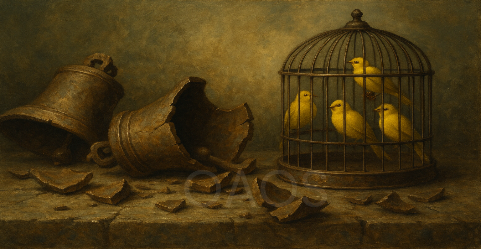 هو — هناك — يخجلُ من أن يظهرَ أمام من في قائمته؛ يغلقُ عينهُ أمام رنةِ العصفورِ الصغيرةِ، ويكتمُ جرس المعبدِ الكبير.