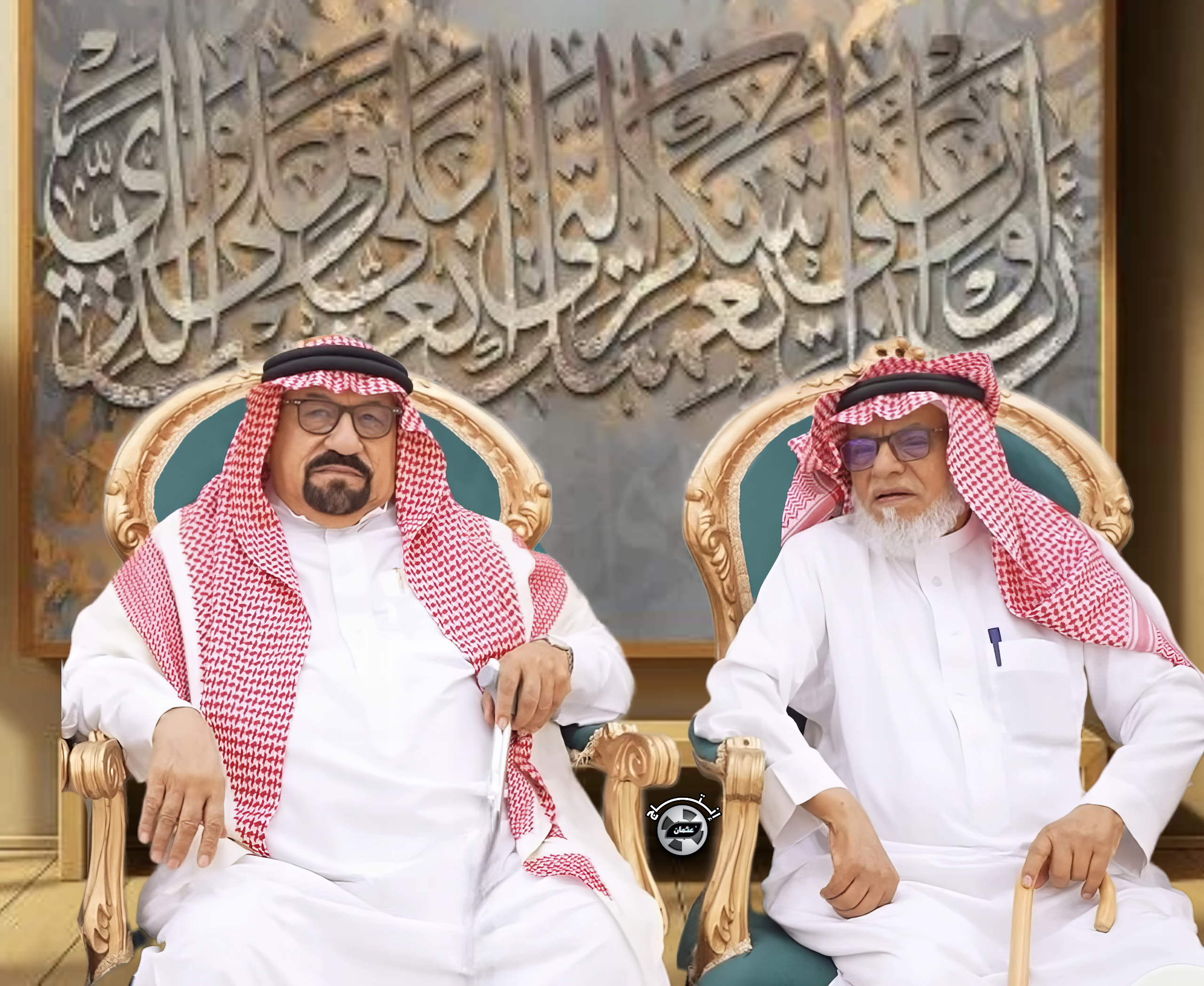 في هذه الصورة يظهر من اليمين الأخ أحمد بن مشهور المشهور والأخ أحمد بن حامد الغامدي، يجلسان جنباً إلى جنب، يمسكان بعصيّ الكبر كرمز للأناقة والهيبة في هذا السن. ملامحهما تفيض بالوقار، ونظراتهما تحكي عن رحلة عمر مليئة بالكفاح والعطاء.