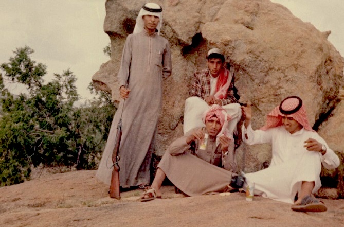 تلك لقطة من بلاد حوالة (منطقة الباحة) لظهيرةٍ شاردة عام 1975م، من اليمين رفقاء تلك الصباحات: عثمان بن أحمد،عساف بن عبد اللطيف،سهيل بن حامد وصالح بن هزاع .. حفظ الله الجميع.